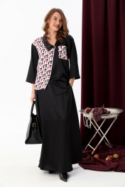 Комбинированный костюм жакет и юбка с асимметричным низом NikVa 928-3 чёрный+ромбы_бордо