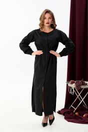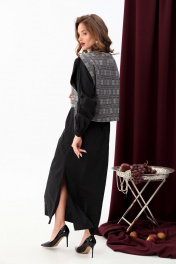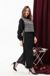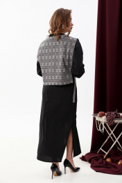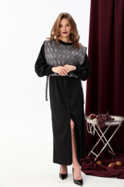 Платье-рубашка и манишка в комплекте, свободный крой NikVa 942-1 чёрный+серая клетка