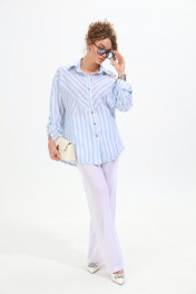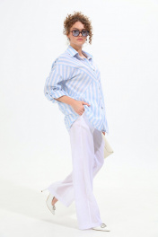 Брюки, рубашка NikVa 961-1 молоко+бело-голубые полосы