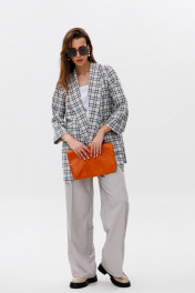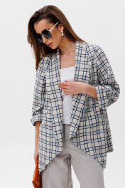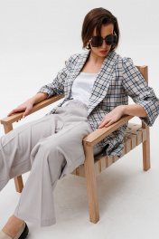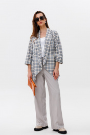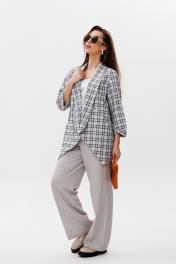 Брюки, жакет, топ NikVa 502-2 клетка+молоко+дымка