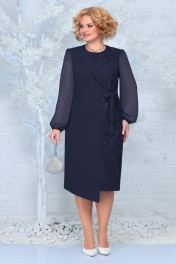 Платье с асимметричным подрезом и воздушным шифоном Ninele 2299 синий
