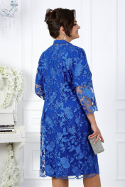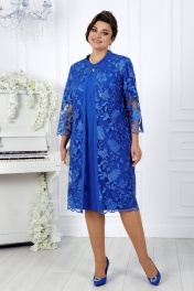5970 Комплект женский Этот комплект состоит из кружевного кардигана и платья, создавая великолепный и элегантный образ для особых мероприятий. Кружевной кардиган играет важную роль в формировании правильного силуэта. Его утонченный узор и легкая ткань создают эффект легкости и воздушности, и при этом подчеркивают достоинства фигуры. Он мягко облегает тело, придавая образу изящество и стиль. Платье, в свою очередь декорировано шифоном и стразами эти детали добавляют платью изысканности и шарма, привлекая внимание к вашей элегантности. Комплект женский, состоящий из платья, выполненного из костюмно-плательной ткани на трикотажной подкладке, и кардигана из гипюра. Платье женское полуприлегающего силуэта, длиной по среднему шву спинки 103 см, перед и спинка на трикотажной подкладке. Перед платья с нагрудными вытачками из проймы, с втачными деталями из шифона идущими от плечевых швов вниз, украшенными клеевыми стразами. Спинка с талиевыми вытачками и средним швом, в котором в верхней части расположена застежка на потайную тесьму-"молнию", в нижней части- шлица. Горловина спинки округлой формы, по переду V- образной, углубленная. Рукав втачной, одношовный, длиной 27 см. Кардиган, полуприлегающего силуэта, длиной по середине спинки 107 см от шва втачивания воротника. Перед с нагрудными вытачками, выходящими из пройм. Борта переда обработаны притачными планками из костюмно-плательной ткани. Спинка с талиевыми вытачками. Низа переда, спинки оформлены фестонами. Горловина спинки и переда округлая, по переду углубленная, с воротником стойкой. Концы воротника прямоугольной формы. Кардиган с застежкой на декоративный крючок на уровне воротника. Воротник выполнен из костюмно-плательной ткани. Рукава втачные, одношовные. Длина рукавов 51 см. Низа рукавов оформлены фестонами.