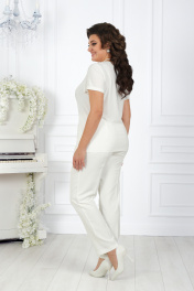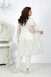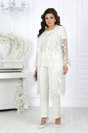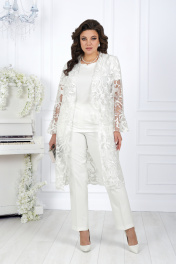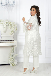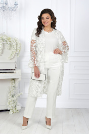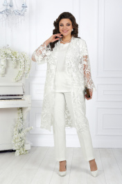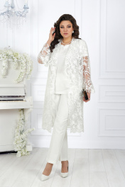 Вечерний брючный костюм из гипюра и сатина с поясом Ninele 5989 молочный