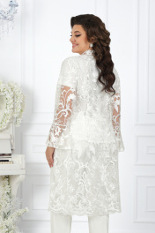 Вечерний брючный костюм из гипюра и сатина с поясом Ninele 5989 молочный - фото 17