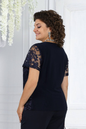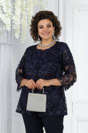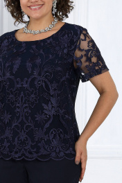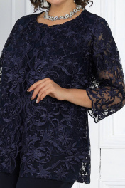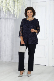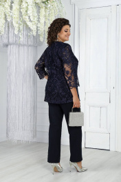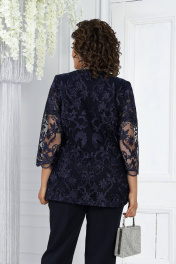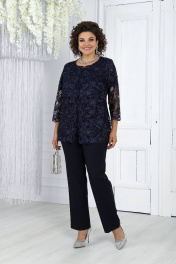 Брючный комплект блуза, брюки и кардиган из сатина-синий Ninele 6004 синий