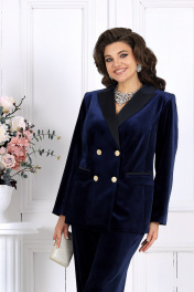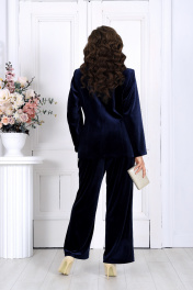 6032 Комплект брючный Этот костюм — воплощение классики вечерней моды и станет незаменимым вариантом для женщин, которые ищут стильный и одновременно комфортный наряд на торжество. Воротник и лацканы из сатина придают изделию утонченный и благородный вид, что делает его подходящим для новогоднего корпоратива, свадьбы или юбилея. Высококачественные материалы и продуманное лекало обеспечивают не только привлекательный внешний вид, но и максимальный комфорт. Такой костюм идеально подойдет для полных женщин, которые ценят элегантность и удобство. Комплект брючный 2-х предметный, состоящий из жакета и брюк. Жакет классический на подкладке, выполнен из велюра. Модель полуприлегающего силуэта с отложным воротником и лацканами «ласточкино крыло». Спереди обработаны смещенные к боковым рельефные швы, направленные от пройм до низа, и вытачки, идущие от прорезных карманов с клапаном до центра груди. Перед с двубортной внешней застежкой на 2 металлические пуговицы и внутренней на 2 потайные. Спинка со средним и рельефными швами. Рукав длинный, втачной, двухшовный. Воротник, лацканы и «рамка» кармана выполнены из сатина в цвет основной ткани. Длина жакета-67 см; длина рукава-61 см. Брюки классические длинные, прямого силуэта, с посадкой на талии, выполнены из трикотажного полотна «велюр». Модель с центральной застёжкой на тесьму-«молнию», на притачном поясе, застегивающемся на петлю и пуговицу. Передние и задние половинки брюк с талиевыми вытачками, направленными от пояса вниз. Спереди обработаны боковые наклонные карманы. Для лучшего прилегания брюк в области талии в поясе по задним половинкам вставлена эластичная лента. Длина брюк по боковому (с поясом)-107 см (52-54 р-р), 108 см (56-60 р-р).