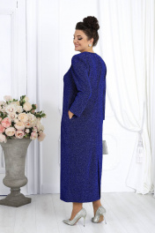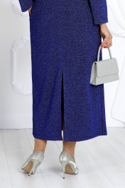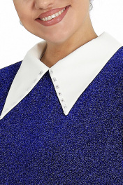 6036 Платье женское Это платье станет прекрасным выбором для вечерних мероприятий, деловых встреч или особых случаев, когда хочется быть уверенной в себе и выглядеть восхитительно. Выполненное из трикотажного полотна с изысканной фактурой и блеском люрекса, оно привлекает взгляд и подчеркивает вашу индивидуальность. Воротник и манжеты легко снимаются, превращая платье из нарядного вечернего в более повседневный вариант. Платье женское полуприлегающего силуэта, выполнено из трикотажного полотна с фактурной лицевой стороной «люрекс». Модель с карманами в боковых швах, на трикотажной подкладке, с плечевыми накладками. Перед с нагрудными вытачками, направленными от пройм. В верхней части среднего шва спинки расположена застежка на тесьму-«молнию» (50 см), в нижней - разрез. Круглая горловина оформлена съемным воротником, декорированным спереди пришивными камнями. Рукав длинный, втачной, низ оформлен съемной манжетой с разрезом. Воротник и манжеты выполнены из сатина и пристегиваются к изделию при помощи прорезных петель и пуговиц. Длина платья-124 см; длина рукава (без манжеты)-58 см; длина рукава (с манжетой)-64 см.
