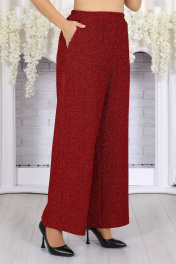 6070 Комплект брючный Это не просто наряд — это ваша уверенность, статус и блеск, который будет сопровождать каждый ваш шаг. В этом костюме каждая деталь продумана так, чтобы создавать ощущение безупречного стиля и лёгкой роскоши. Мягкое мерцание люрекса делает образ выразительным и дорогим, а утончённый крой подчёркивает женственность и гармонию силуэта. Блузка с асимметричной деталью по линии талии — это модный акцент, который визуально формирует стройный силуэт и придаёт образу дизайнерскую изысканность. Нежная линия декольте в обрамлении округлой горловины элегантно подчёркивает женственность. Брюки прямого силуэта с комфортной посадкой — символ утончённой простоты и свободы. Эластичный пояс обеспечивает удобство, а мерцающая фактура ткани делает их достойным элементом вечернего гардероба. Такой костюм создан для особых случаев: новогодних вечеров, корпоратива, праздничного ужина или выхода в свет, но при этом он настолько универсален, что легко впишется и в деловой стиль. Комплект брючный 2-х предметный, состоящий из блузки и брюк. Блузка полуприлегающего силуэта, выполнена из трикотажного полотна с фактурной лицевой стороной «люрекс». Модель без подкладки, с плечевыми накладками. Спинка с талиевыми вытачками и средним швом. По линии талии в левой части переда – горизонтальный подрез с односторонними складками и отлетной деталью в шве. По линии талии в правой части переда обработан цельнокроеный пояс, край которого крепится в левом боковом шве. Горловина округлая, углубленная спереди. Рукав длинный, втачной. Длина блузки – 62 см (50-58 р-р), 64 см (60-64 р-р); длина рукава – 57 см (50-58 р-р), 58 см (60-64 р-р). Брюки длинные, с посадкой на талии, выполнены из трикотажного полотна с фактурной лицевой стороной «люрекс». Модель без стрелок, без застежки. Спереди обработаны наклонные боковые карманы. Для лучшего прилегания по линии талии в притачном поясе предусмотрена эластичная лента, вставленная по всей длине. Длина брюк по боковому (с поясом) – 106 см (50-52 р-р), 107 см (54-58 р-р), 108 см (60-64 р-р).