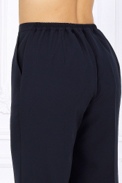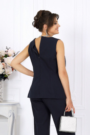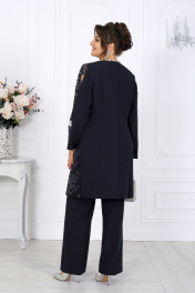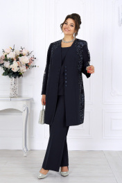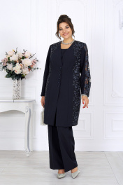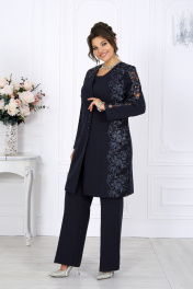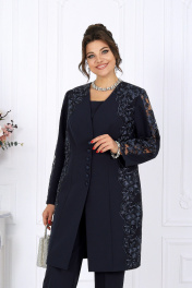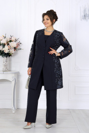 6071 Этот костюм-тройка универсален и вне времени: он одинаково уместен на торжестве, в офисе или на важной встрече. В нём вы будете выглядеть элегантно и уверенно, будь то вечер в театре, семейное событие или праздник, где хочется блистать, сохранив безупречный вкус. Мягкий полуприлегающий силуэт формирует идеальные пропорции, а продуманные линии визуально вытягивают фигуру, создавая ощущение лёгкости и стройности. Выбирая этот наряд, вы выбираете гармонию — между комфортом и красотой, строгостью и женственностью, классикой и современностью. Это не просто костюм — это отражение вашего внутреннего достоинства и стиля. Комплект брючный 3-х предметный, состоящий из кардигана, блузки и брюк. Кардиган полуприлегающего силуэта, выполнен из костюмно-плательной ткани и гипюра. Модель без воротника и плечевых накладок. Перед на подкладке, с рельефными швами, направленными от проймы до низа, и центральной застежкой на 6 прорезных петель и 6 пуговиц. В области горловины, плеча и боковой части переда настрочены декоративные элементы из гипюра с фестонами по краю. Спинка со средним швом и рельефами, направленными от проймы до низа. Горловина округлая по спинке, спереди V-образная, углубленная. Рукав длинный, втачной, со вставкой из гипюра в верхней части. Длина кардигана – 95 см, длина рукава – 60 см. Блузка полуприлегающего силуэта, выполнена из костюмно-плательной ткани. Модель без подкладки, воротника, рукавов и плечевых накладок. Перед с нагрудными вытачками. Спинка с талиевыми вытачками и средним швом, в верхней части которого обработана застежка на потайную тесьму-«молнию» (50 см). Горловина округлая, углубленная спереди. Длина блузки – 65 см. Брюки классические, длинные, с посадкой на талии, выполнены из костюмно- плательной ткани. Модель со стрелками. Передние и задние половинки брюк с талиевыми вытачками, направленными от пояса вниз. Спереди обработаны наклонные боковые карманы и центральная застёжка на тесьму-«молнию». Притачной пояс застегивается на 1 петлю и 1 пуговицу; для лучшего прилегания по линии талии в притачном поясе предусмотрена эластичная лента, вставленная по спинке. Длина брюк по боковому (с поясом) – 107 см (50 – 52 р-р), 108 см (54 – 58 р-р).