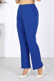 6080 Этот нарядный костюм для полных женщин станет вашим универсальным решением — он уместен и на праздничном вечере, и в офисной обстановке. Модель гармонично сочетает в себе торжественность и лаконичность, поэтому одинаково эффектно смотрится как с лодочками и клатчем, так и с более сдержанными аксессуарами. Блузка прямого силуэта выполнена в двух слоях: верхний — из роскошного гипюра с утончённым растительным узором и фестонами по краю, нижний — из струящегося шифона. Такое сочетание придаёт образу глубину и воздушность, мягко скрывая возможные особенности фигуры. Длинные рукава с манжетами и завязками добавляют изысканности, а округлый вырез горловины подчёркивает линию шеи. Благодаря потайной застёжке по спинке изделие сохраняет идеальную посадку и комфорт в движении. Брюки классического кроя выполнены из качественной костюмно-плательной ткани. Они идеально садятся на талию, вытягивают силуэт и визуально стройнят фигуру. Стрелки формируют чёткие линии, придавая образу деловую собранность, а эластичная вставка на поясе обеспечивает удобство даже при длительном ношении. Комплект брючный 2-х предметный, состоящий из блузки и брюк. Блузка прямого силуэта, комбинированная. Модель двухслойная: верхний слой выполнен из гипюра с фестонами, нижний – из шифона. На верхней детали переда обработаны нагрудные вытачки, на верхней детали спинки – талиевые. В среднем шве спинки предусмотрена застежка на потайную тесьму-«молнию» (50см). Вырез горловины переда и спинки округлый, углубленный спереди. Рукав длинный, втачной, со сборкой по низу и притачной манжетой с завязками. Длина блузки – 74 см, длина рукава (с манжетой) – 59 см. Брюки классические, длинные, с посадкой на талии, выполнены из костюмно- плательной ткани. Модель со стрелками. Передние и задние половинки брюк с талиевыми вытачками, направленными от пояса вниз. Спереди обработаны наклонные боковые карманы и центральная застёжка на тесьму-«молнию». Притачной пояс застегивается на 1 петлю и 1 пуговицу; для лучшего прилегания по линии талии в притачном поясе предусмотрена эластичная лента, вставленная по спинке. Длина брюк по боковому (с поясом) – 104 см (50 – 52 р-р), 105 см (54 – 58 р-р).