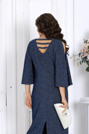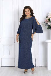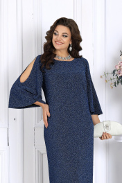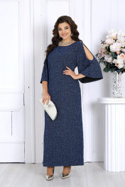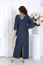 6083 Платье женское Это длинное вечернее платье из ткани с люрексом создано, чтобы подчеркнуть вашу женственность и уверенность. Блестящее трикотажное полотно мягко играет при каждом движении, не сковывая и красиво струясь по фигуре. Благодаря полуприлегающему силуэту и трикотажной подкладке, модель обеспечивает идеальную посадку на фигуре и комфорт на протяжении всего вечера. Рукава 3/4 с изящными разрезами «капля» открывают плечи, придавая образу лёгкость и торжественность. На спинке — эффектная деталь: V-образный вырез с декоративными перемычками, подчёркивающий линию плеч и добавляющий утончённости. Разрез сзади делает походку свободной и визуально вытягивает силуэт. Платье идеально подойдёт для любого особенного события — праздника, свадьбы, банкета, новогоднего вечера или торжества. Его можно дополнить элегантными аксессуарами и блестящими туфлями — и вы готовы блистать! Платье женское полуприлегающего силуэта, выполнено из трикотажного полотна с фактурной лицевой стороной «люрекс». Модель на трикотажной подкладке, без застежки и плечевых накладок. Перед платья с нагрудными вытачками, направленными от проймы. Спинка с талиевыми вытачками и разрезом в нижней части среднего шва. Края V-образной горловины спинки фиксируются тремя перемычками из основного материала; горловина переда круглой формы. Рукав трехчетвертной, расширенный, с вырезом «капля» от плеча. Длина платья -- 144 см; длина рукава - 49 см.