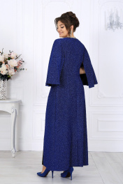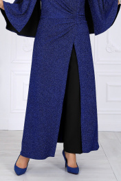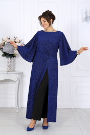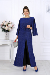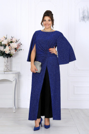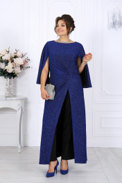 6084 Этот элегантный костюм-двойка создан для женщин, которые ценят комфорт и изысканность в равной мере. Он словно приглашает сиять — мягкий блеск люрекса переливается в свете вечерних огней, создавая атмосферу праздника даже в обычный день. Туника свободно струится по фигуре, легко скрывая всё лишнее и подчеркивая достоинства. Драпировка по линии талии формирует красивый силуэт «песочных часов», а асимметричный запах добавляет образу динамики и утончённости. Эффектные рукава придают наряду торжественность, сохраняя при этом абсолютную лёгкость движений. Каждая деталь продумана до мелочей — от мягкой подкладки, обеспечивающей комфорт, до аккуратной потайной застёжки, сохраняющей чистоту линий. Этот наряд универсален: он уместен на праздничном приёме, корпоративе или ужине в ресторане, а также станет идеальным выбором для торжественных семейных событий. В нём комфортно, уверенно и красиво — именно так выглядит настоящая женственность в современном прочтении. Комплект брючный 2-х предметный, состоящий из туники и брюк. Туника полуприлегающего силуэта с расширением к низу, выполнена из трикотажного полотна с фактурной лицевой стороной «люрекс». Модель отрезная по линии талии; верхняя часть переда и спинки (лиф) на трикотажной подкладке. Лиф переда с одним рельефным швом, направленным от левой проймы; нижняя часть переда состоит из двух деталей, скрепленных на запах. По линии талии, вдоль рельефа, перед задрапирован сборкой и односторонними складками. На спинке обработаны талиевые вытачки и средний шов с застежкой на потайную тесьму-«молнию» (50 см). Вырез горловины спинки и переда формы «лодочка». Рукав без шва, с отлетными краями; крепится к пройме только в верхней части. Длина туники – 139 см; длина рукава – 51 см. Брюки классические, длинные, с посадкой на талии, выполнены из костюмно- плательной ткани. Модель со стрелками. Передние и задние половинки брюк с талиевыми вытачками, направленными от пояса вниз. Спереди обработаны наклонные боковые карманы и центральная застёжка на тесьму-«молнию». Притачной пояс застегивается на 1 петлю и 1 пуговицу; для лучшего прилегания по линии талии в притачном поясе предусмотрена эластичная лента, вставленная по спинке. Длина брюк (с поясом) – 102 см (50-52р-р); длина брюк (с поясом) – 103 см (54-58р-р).