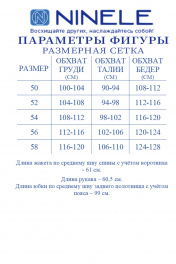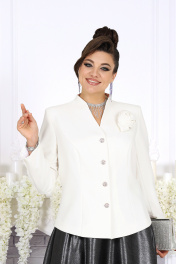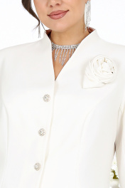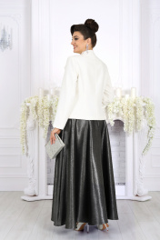 6093 Комплект женский Праздничный костюм‑двойка, который звучит дорого и выглядит идеально на больших размерах. Когда нужно выступить в образе, где каждая деталь говорит о вкусе и статусе, этот комплект — точное попадание. Сочетание белого жакета и блестящей, струящейся юбки создаёт впечатление утончённой роскоши, а продуманный крой обеспечивает комфорт и свободу движений на всё мероприятие. Жакет — строгая элегантность и мягкая посадка. Полуприлегающий силуэт, подчёркнутые рельефы, аккуратная стойка и длинный рукав — всё это формирует собранный, лаконичный образ. Декоративные пуговицы и съёмный цветок добавляют женственный акцент, делая жакет подходящим и для официальных событий, и для вечерних праздников. Модель выполнена из плотного костюмного крепа с напылением, на подкладке и с плечевыми накладками — поэтому сидит ровно, держит форму и выглядит дорого. Юбка — движение, блеск и идеальный баланс. Юбка‑полусолнце из сатина с напылением мягко струится, красиво переливается и задаёт праздничный тон всему образу. Почему этот комплект стоит выбрать именно сейчас? Он сразу готов к торжеству: не нужно придумывать, с чем сочетать, или подбирать отдельные элементы. Подходит женщинам с пышными формами — стройнит, корректирует силуэт и не стесняют движений. Смотрится солидно, но не скучно: лаконичный жакет + праздничная юбка = образ для свадьбы, юбилея, корпоративного вечера или любого важного события. Комплект женский 2-х предметный, состоящий из жакета и юбки. Жакет однобортный, полуприлегающего силуэта, выполнен из костюмно-плательного крепа с напылением. Модель на поливискозной подкладке, с плечевыми накладками. Перед с рельефными швами, направленными от пройм, и центральной внешней застежкой на 4 декоративные пуговицы. Спинка со средним швом и рельефами, направленными от пройм до низа. Горловина оформлена стойкой, цельнокроеной с деталями переда и спинки. Рукав длинный, втачной. Жакет дополнен съемным «цветком» из основной ткани. Длина жакета (с воротником) – 61 см; длина рукава – 60,5 см. Юбка-полусолнце, с посадкой на талии, выполнена из костюмно-плательного сатина с напылением. Модель на трикотажной подкладке. В среднем шве заднего полотнища обработана застежка на потайную тесьму-«молнию» (20 см). Притачной пояс застегивается по спинке на 1 петлю и 1 пуговицу; для лучшего прилегания по линии талии в поясе предусмотрена эластичная лента, вставленная над боковыми швами. Длина по среднему шву (с поясом) - 99 см.