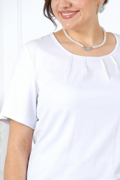 7402 Комплект брючный Комплект брючный 3-х предметный, состоящий из жакета и брюк, выполненных из ткани лен-вишер, и джемпера, выполненного из трикотажного полотна. Жакет прямого силуэта, с центральной бортовой застежкой с отрезными планками на 7 петель и 7 пуговиц, со стояче-отложным воротником с отрезной стойкой. Длина изделия по середине спинки 73 см от шва втачивания воротника в горловину. Перед с нагрудными вытачками, выходящими из пройм. В нижней части переда настрочены накладные карманы, с имитацией бантовой складки посередине кармана и клапаны, застегивающиеся на 1 петлю и 1 пуговицу. По спинке и частично по переду настрочена кулиса, в которую втянут шнур. Для регулировки сборки по кулисе на шнур продеты фиксаторы, концы шнура оформлены наконечниками. Рукава втачные, одношовные, с притачными манжетами, застегивающимися на 1 петлю и 1 пуговицу, с разрезами в нижних швах рукавов, с настрочными патами, застегивающимися на 1 петлю и 1 пуговицу. Длина рукава с манжетой 62 см. Длина рукава может регулироваться с помощью паты. Жакет с плечевыми накладками. Брюки с посадкой на талии, зауженные к низу, на притачном поясе с резинкой вдоль всего пояса. На передних половинках брюк расположены наклонные боковые карманы. Джемпер полуприлегающего силуэта, длиной по середине спинки 63 см. Перед с нагрудными вытачками, выходящими из пройм. Из горловины вниз застрочены 4 складки. Горловина переда и спинки округлой формы, по переду углубленная. Срезы горловин окантованы косой бейкой. Рукава втачные, одношовные. Длина рукава 26 см.