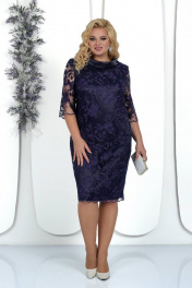 Платье приталенного силуэта из кружева с разрезом Ninele 7425 синий