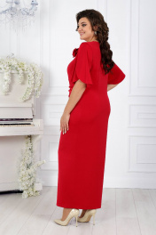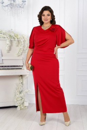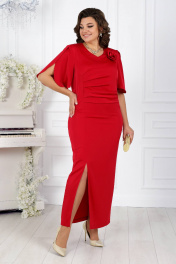 Платье из сатина с складками и разрезом, V-образный вырез Ninele 7441 красный