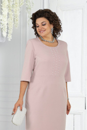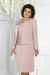 Классический костюм жакет и платье из костюмной ткани-розовый Ninele 7469 пудра