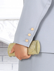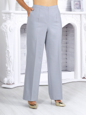 7485 Комплект брючный Этот брючный костюм — отличное решение для создания офисного, делового или вечернего образа. Он сочетает в себе классические элементы и новое прочтение классики. Носите его «и в пир, и в мир» — для работы, праздников или важных событий. Жакет двубортного кроя с классическим пиджачным воротником подчеркивает строгость и утонченность образа. Шлица на спинке с пуговицами придает модели динамичности и оригинальности. Комплект брючный 2-х предметный, состоящий из жакета и брюк. Жакет классический на подкладке, полуприлегающего силуэта, выполнен из костюмной поливискозы. Спереди обработаны рельефные швы, направленные от пройм до низа; в нижней части переда расположены прорезные карманы с клапаном. Перед с двубортной внешней застежкой на 2 декоративные пуговицы и внутренней на 2 потайные. На спинке обработана высокая шлица с застежкой на 3 декоративные пуговицы. Воротник пиджачного типа. Рукав длинный, втачной; в нижней части локтевого шва – имитация шлицы с застежкой на 3 пуговицы. Длина жакета - 66 см; длина рукава - 61 см. Брюки классические, с кантами и посадкой на талии, выполнены из костюмной поливискозы. Модель с центральной застёжкой на тесьму-«молнию», на притачном поясе, застегивающемся на петлю и пуговицу. Передние и задние половинки брюк с талиевыми вытачками, направленными от пояса вниз. Спереди обработаны боковые наклонные карманы. Для лучшего прилегания брюк в области талии в поясе по задним половинкам вставлена эластичная лента. Длина брюк по боковому (с поясом)-106 см (50-54 р-р), 107 см (56-58 р-р).