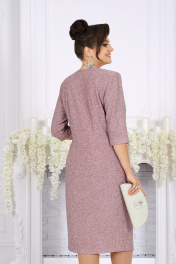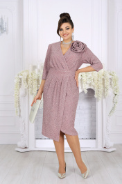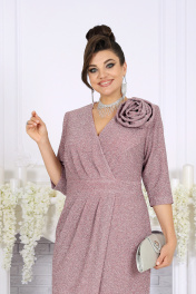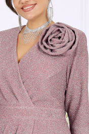 7499 Платье женское Когда хочется блистать — выбери платье, которое говорит само за себя. Модель из мерцающего трикотажа с люрексом создана для того, чтобы быть в центре внимания. Асимметричный крой, элегантный запах и акцентный цветок на плече — каждая деталь работает на эффектный образ. Это не просто платье — это ваше настроение, ваша уверенность, ваша женственность. Это платье не требует дополнительных украшений — оно уже само как украшение. Просто надень его, добавь любимые туфли, возьми клатч — и будь готова ловить восхищённые взгляды. Платье женское полуприлегающего силуэта, выполнено из трикотажного полотна с фактурной лицевой стороной «люрекс». Модель на трикотажной подкладке, с плечевыми накладками. На правой части переда, вдоль отрезного пояса, заложены косые односторонние складки; детали лифа и юбки скреплены на запах. Низ платья асимметричный: правая часть переда удлинена к центру и оформлена углом, левая -- скругленная и входит в правый боковой шов. На спинке обработаны талиевые вытачки. В левом боковом шве предусмотрена застежка на потайную тесьму-«молнию» (35 см). Рукав длиной 3/4, втачной. Платье дополнено съемным «цветком» из основного полотна. Длина платья-108 см; длина рукава-41 см.