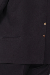 7502 Костюм брючный Двубортный брючный костюм — выбор тех, кто предпочитает стиль с характером. Эффектная асимметрия, дизайнерская застёжка и чёткая посадка делают этот комплект безупречным решением для яркого офисного дня, вечернего выхода или модного события. Он создан для тех, кто умеет сочетать деловую элегантность с фэшн-акцентами. Костюм брючный 2-х предметный, состоящий из жакета и брюк. Жакет двубортный, полуприлегающего силуэта, выполнен из костюмной поливискозы. Модель на подкладке, с плечевыми накладками. Спереди обработаны рельефные швы, направленные от пройм до низа; в нижней части переда расположены прорезные карманы с клапаном. Перед со смещенной внешней застежкой на 2 декоративные пуговицы и внутренней на 2 потайные. Спинка асимметричная, с одним косым рельефным швом, направленным от правого плечевого до низа; в шве обработана высокая шлица с застежкой на 2 декоративные пуговицы. На нижней части спинки, слева – имитация прорезного кармана «в рамку». Воротник пиджачного типа. Рукав длинный, втачной; в нижней части локтевого шва – имитация шлицы с застежкой на 3 пуговицы. Длина жакета - 66 см; длина рукава - 61 см. Брюки классические, с кантами и посадкой на талии, выполнены из костюмной поливискозы. Модель с центральной застёжкой на тесьму-«молнию», на притачном поясе, застегивающемся на петлю и пуговицу. Передние и задние половинки брюк с талиевыми вытачками, направленными от пояса вниз. Спереди обработаны боковые наклонные карманы. Для лучшего прилегания брюк в области талии в поясе по задним половинкам вставлена эластичная лента. Длина брюк по боковому (с поясом)-107.