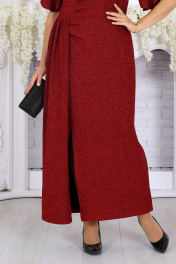 7509 Платье женское Платье, которое само по себе становится событием. Роскошное вечернее платье из мерцающего трикотажа с нитью люрекс создано, чтобы подчеркнуть женственность и элегантность в каждом движении. Оно притягивает взгляд, играя бликами при любом освещении — будь то мягкий свет ресторанных ламп или огни праздничного зала. Это тот редкий случай, когда комфорт и эффектность соединяются в идеальном балансе: платье выглядит торжественно, но остаётся удобным даже во время самого долгого вечера. Главный акцент — отлетная деталь из того же мерцающего полотна. Она добавляет образу утончённую театральность. Съемный цвет выполнен в тон платья, его можно расположить на плече, в зоне декольте или у талии — в зависимости от настроения и события. Платье идеально садится по фигуре, подчёркивая достоинства женщин с роскошными формами. Эта модель — воплощение торжественности и женственности. Она будет уместна на свадьбе, юбилее, выпускном, театральной премьере или корпоративном вечере. Стоит лишь надеть туфли на каблуке и добавить каплю любимого парфюма — и вы уже героиня праздника, к которой прикованы все взгляды. Платье женское полуприлегающего силуэта, выполнено из трикотажного полотна с фактурной лицевой стороной «люрекс». Модель на трикотажной подкладке, с плечевыми накладками. В левом боковом шве обработана застежка на потайную тесьму-«молнию» (35 см). Перед платья с горизонтальным подрезом по линии талии и отлетной деталью в шве подреза. В правой части переда обработан рельеф с разрезом в нижней части. Вдоль рельефного шва заложены односторонние складки, направленные к центру переда. Спинка с талиевыми вытачками. Горловина спинки округлая, по переду V-образная, углубленная. Рукав короткий, втачной, формы «крылышко на запах», со скругленными краями. Платье дополнено съемным «цветком» из основного полотна. Длина платья - 136 см; длина рукава - 31 см.