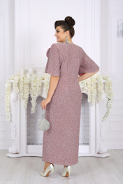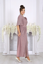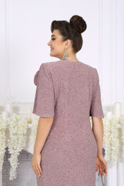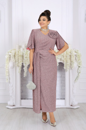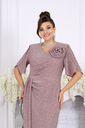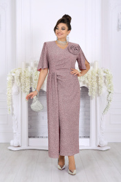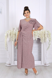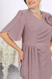 7509 Платье женское Платье, которое само по себе становится событием. Роскошное вечернее платье из мерцающего трикотажа с нитью люрекс создано, чтобы подчеркнуть женственность и элегантность в каждом движении. Оно притягивает взгляд, играя бликами при любом освещении — будь то мягкий свет ресторанных ламп или огни праздничного зала. Это тот редкий случай, когда комфорт и эффектность соединяются в идеальном балансе: платье выглядит торжественно, но остаётся удобным даже во время самого долгого вечера. Главный акцент — отлетная деталь из того же мерцающего полотна. Она добавляет образу утончённую театральность. Съемный цвет выполнен в тон платья, его можно расположить на плече, в зоне декольте или у талии — в зависимости от настроения и события. Платье идеально садится по фигуре, подчёркивая достоинства женщин с роскошными формами. Эта модель — воплощение торжественности и женственности. Она будет уместна на свадьбе, юбилее, выпускном, театральной премьере или корпоративном вечере. Стоит лишь надеть туфли на каблуке и добавить каплю любимого парфюма — и вы уже героиня праздника, к которой прикованы все взгляды. Платье женское полуприлегающего силуэта, выполнено из трикотажного полотна с фактурной лицевой стороной «люрекс». Модель на трикотажной подкладке, с плечевыми накладками. В левом боковом шве обработана застежка на потайную тесьму-«молнию» (35 см). Перед платья с горизонтальным подрезом по линии талии и отлетной деталью в шве подреза. В правой части переда обработан рельеф с разрезом в нижней части. Вдоль рельефного шва заложены односторонние складки, направленные к центру переда. Спинка с талиевыми вытачками. Горловина спинки округлая, по переду V-образная, углубленная. Рукав короткий, втачной, формы «крылышко на запах», со скругленными краями. Платье дополнено съемным «цветком» из основного полотна. Длина платья - 136 см; длина рукава - 31 см.