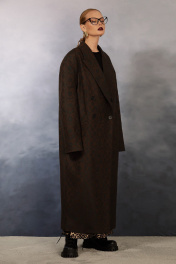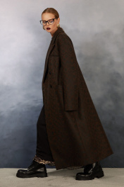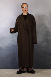 Цвет -“ Лесных каштанов” Очень модное сочетание цветовой палитры в данном изделии. Fashion пальто oversize, выполнено из премиальной, шерстяной пальтовой ткани. Пальто теплое, подходит для очень холодной осени. Прямой силуэт, выполнен по типу “мужской пиджак”. Усиленное удлиненное плечо. Изделие с двубортной застежкой на 4 петли и пуговицы. Воротник пиджачного типа. На полочках нагрудные вытачки, прорезные горизонтальные карманы с листочками, декоративный прорезной карман с отделочной деталью на верхней левой полке пальто. Борта прямые. По спинке средний шов и шлица. Длина до середины икры. Изделие на авторской подкладке.