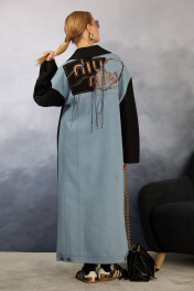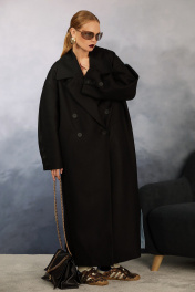 Цвет- “Воронье крыло” Объемное комбинированное пальто из премиальной шерсти. Прямой силуэт, длина maxi. Спущенная линия плеча. Изделие с двубортной застежкой на 4 петли и пуговицы. Воротник объемный, пиджачного типа. На полочках нагрудные вытачки, прорезные карманы с листочками. Борта прямые. Спинка выполнена из плотного хлопкового джинса. На спинке кокетка и вертикальные подрезы. По низу спинки притачная планка и отделочные хлястики. Рукав втачной ,одношовный. По центру встречная складка, по низу шлица с декоративными пуговицами. Изделие на авторской вискозной подкладке. На кокетке спинки дизайнерская вышивка.