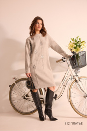 Стильное трикотажное женское платье из мягкого трикотажного полотна, модель полуприлегающего силуэта, со спущенным рукавом. В боковых швах присутствуют карманы. Перед и спинка декорированы дизайнерской вышивкой.