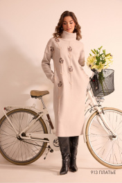 Стильное трикотажное женское платье из мягкого трикотажного полотна, модель полуприлегающего силуэта, со спущенным рукавом. В боковых швах присутствуют карманы. Перед и спинка декорированы дизайнерской вышивкой.