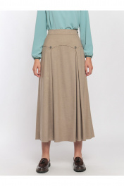Юбка длиной миди в приятном бежевом цвете подойдёт для создания спокойных аутфитов.
