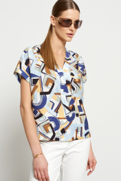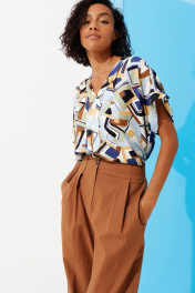 Блузка лаконичного кроя из лёгкого полотна с дизайнерским принтом. На фото с брюками под артикулом 4.519 ROOK.
