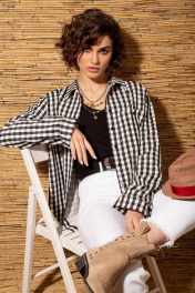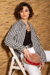 Рубашка свободного силуэта из хлопка с клетчатым дизайном Nova Line 20713 клетка_черная