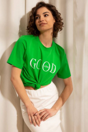 Зеленая майка из хлопкового трикотажа с декором печати Nova Line 20748 зеленый
