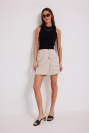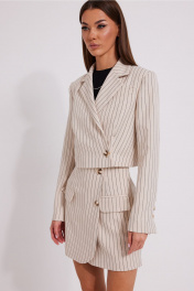 Жакет, юбка-шорты – полиэстер 64%, вискоза 33%, спандекс 3%; топ – вискоза 64%, хлопок 32%, спандекс 4%