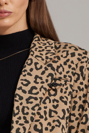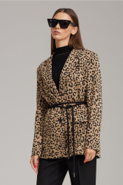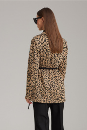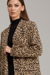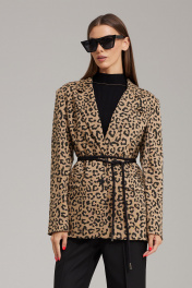 Жакет полуприлегающего силуэта, на подкладке, втачного покроя, по свободе облегания – «оверсайз». Воротник пиджачного типа. Застежка жакета центрально-бортовая, на пуговицы. Рукав двухшовный, полной длины. На переде расположены вертикально направленные карманы с нагрудной вытачкой, а в области бедер – прорезные в рамку с клапаном, в верхней левой части переда расположена имитация кармана в рамку. Клапаны и борта по низу слегка закруглены. Спинка состоит из бочка и центральных частей. К жакету может прилагаться пояс-шнур из декоративных материалов. Ширина изделия на уровне глубины: 42р – 51см, 44р – 53см, 46р – 55см, 48 – 57см, 50 – 59см; Ширина по линии талии: 42р – 50 см, 44р – 52см, 46р – 54см, 48р – 56см, 50р – 58см; Ширина по линии бедер: 42р – 54см, 44р – 56см, 46р – 58см, 48р – 60см, 50р – 62см; Длина по среднему шву спинки: 42-50р – 73см; Ширина спинки: 42-44р – 39,5см, 46–50р – 41см; Ширина плеча: 42-44р – 13см, 46 –50р – 13,5см; Ширина рукава под проймой: 42р – 17см, 44р – 19см, 46р – 20см, 48р – 21см, 50р – 22см; Длина рукава: 42 –50 – 62см.