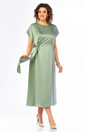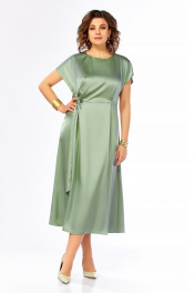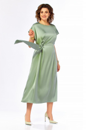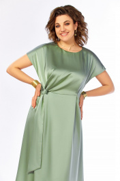 Платье женское, полуприлегающего силуэта со спущенным рукавом. Отрезное по линии талии, по переду заложены складки. С правой стороны в области талии вставлен пояс из основной ткани. Спинка со средним швом и потайной молнией.