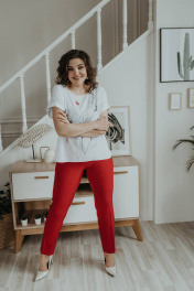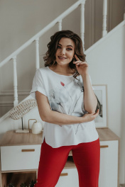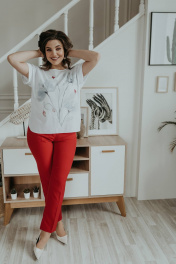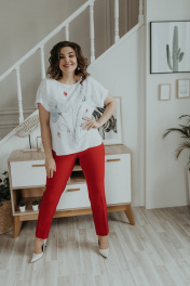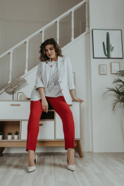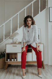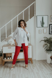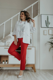 Блуза, брюки, жакет Ольга Стиль С-707/1 полоска_красный