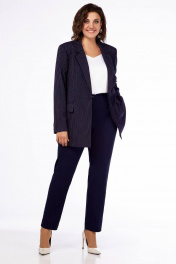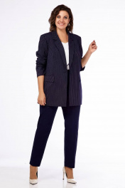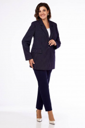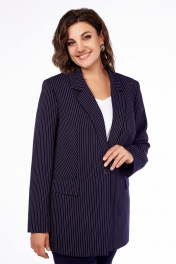 Деловой костюм из текстиля в светлую полоску для size+ Ольга Стиль С-819 синий_полоска