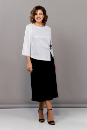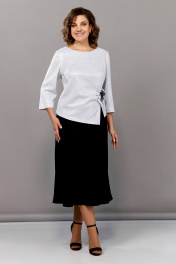 Блуза, юбка Ольга Стиль С-877 светло-серый_черный