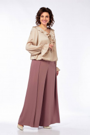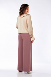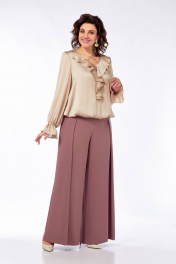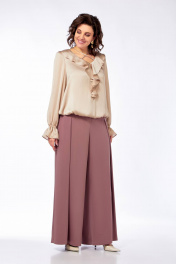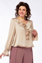 Нарядная блуза с вырезом В-образ и воланами из струящейся ткани Ольга Стиль С-889 песочный_перламутр