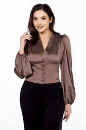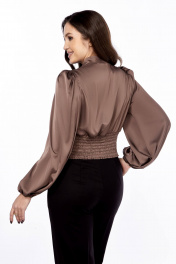 Бежевый нарядный полуприлегающий блузка из струящейся ткани Ольга Стиль С-893 капучино
