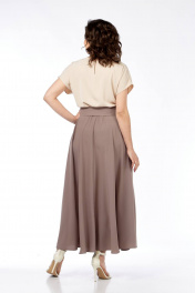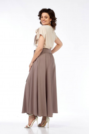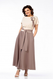 Нарядное платье длиной макси свободного силуэта, выполнено из двух оттенков . Отрезное по линии талии, резинка по спинке. Горловина овальной формы, спущеная линия плеча. Нижняя часть платья клеш-полусолнце, карманы в боковых швах. Пояс из основной ткани из двух цветов. Декоративный цветок-брошь ручной работы. Длтна платья 142см, Длина плеча 25см