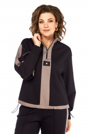 Костюм спортивный брюки джемпер больших размеров Ольга Стиль С-948 черный