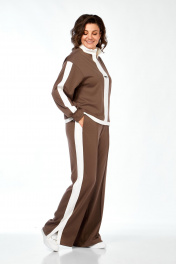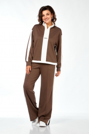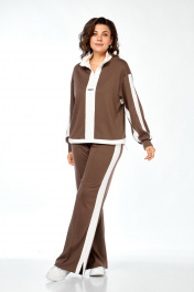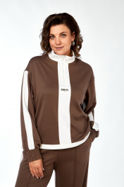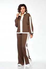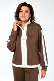 Костюм спортивный брюки джемпер больших размеров Ольга Стиль С-948 коричневый