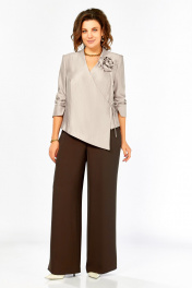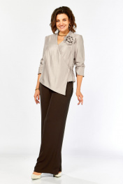 Блуза, брюки Ольга Стиль С-968 бежево-коричневый