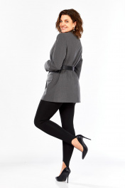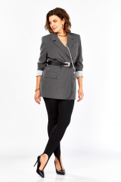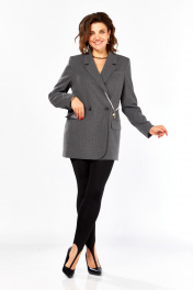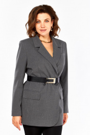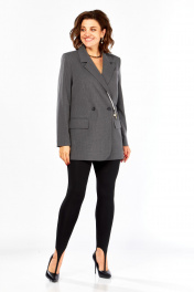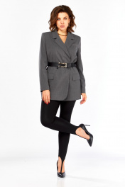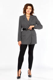Стильный жакет из костюмной ткани в полоску, прямого силуэта, на подкладке. Пиджачный воротник, двубортная застежка, карманы с клапанами. Слева вверху декоративная листочка. По спинке шлица. Рукава втачные, внизу шлицы и пуговицы. Рукава с декоративной подкладкой, с возможностью стильного отворота.