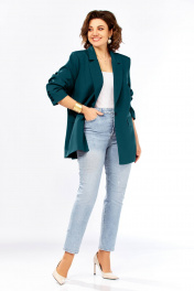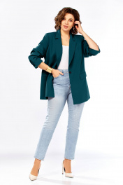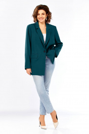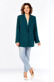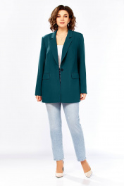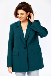 Стильный жакет прямого силуэта с пиджачным воротником, с застежкой на одну пуговицу. По переду карманы клапанами. Рукав длинный двухшовный со шлицей на четыре пуговицы.