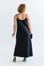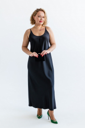 Платье-комбинация прямого силуэта. Длина макси. Модель изготовлена из струящегося текстиля с мягким, благородным блеском. Благодаря крою под углом 45 °, изделие садится на любой тип фигуры и деликатно скрывает различные особенности. Спинка цельнокроеная. Вырез горловины овальный, визуально вытягивает шею и выгодно подчёркивает область декольте. Нагрудные вытачки из проймы аккуратно распределяют объём на выпуклость груди. Шлейки тонкие, регулируются под необходимый рост бельевой фурнитурой из металла в цвете «благородное золото». Пройма по переду и спинке слегка углублена. Фигурная часть верхней части проймы переда и спинки – скрывает нюансы в области подмышек по переду и спинке. Модель прекрасно подойдёт для любого торжества в качестве изысканного наряда. А благодаря правильному крою и силуэту, платье является актуальной базой для создания образов в женственном, романтическом, casual и спортшик стиле.