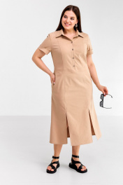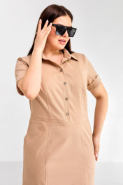 Летнее платье в стиле сафари из хлопкового текстиля Ollsy 01666 песочный